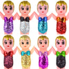 Our 8 pack of Bustiere Kewpie dolls come with a hand painted glitter buster and bodice in the following colours: Lilac & Purple, Black & Silver, Royal Blue & Aqua, Copper & Red, Red & Maroon, Aqua & Gold, Light Pink & Hot Pink, and Green & Black.