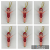 Christmas Kewpie ornaments come in a pack of 6 Christmas decorations with hanging loops from their head to hang them on your Christmas tree.