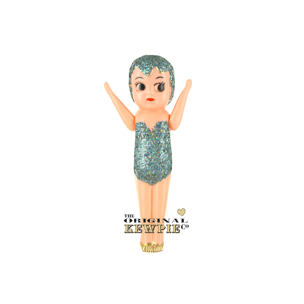 This Plain Kewpie comes with a hand painted full Glam Glittered head and sweetheart bodice in steel grey glitter.