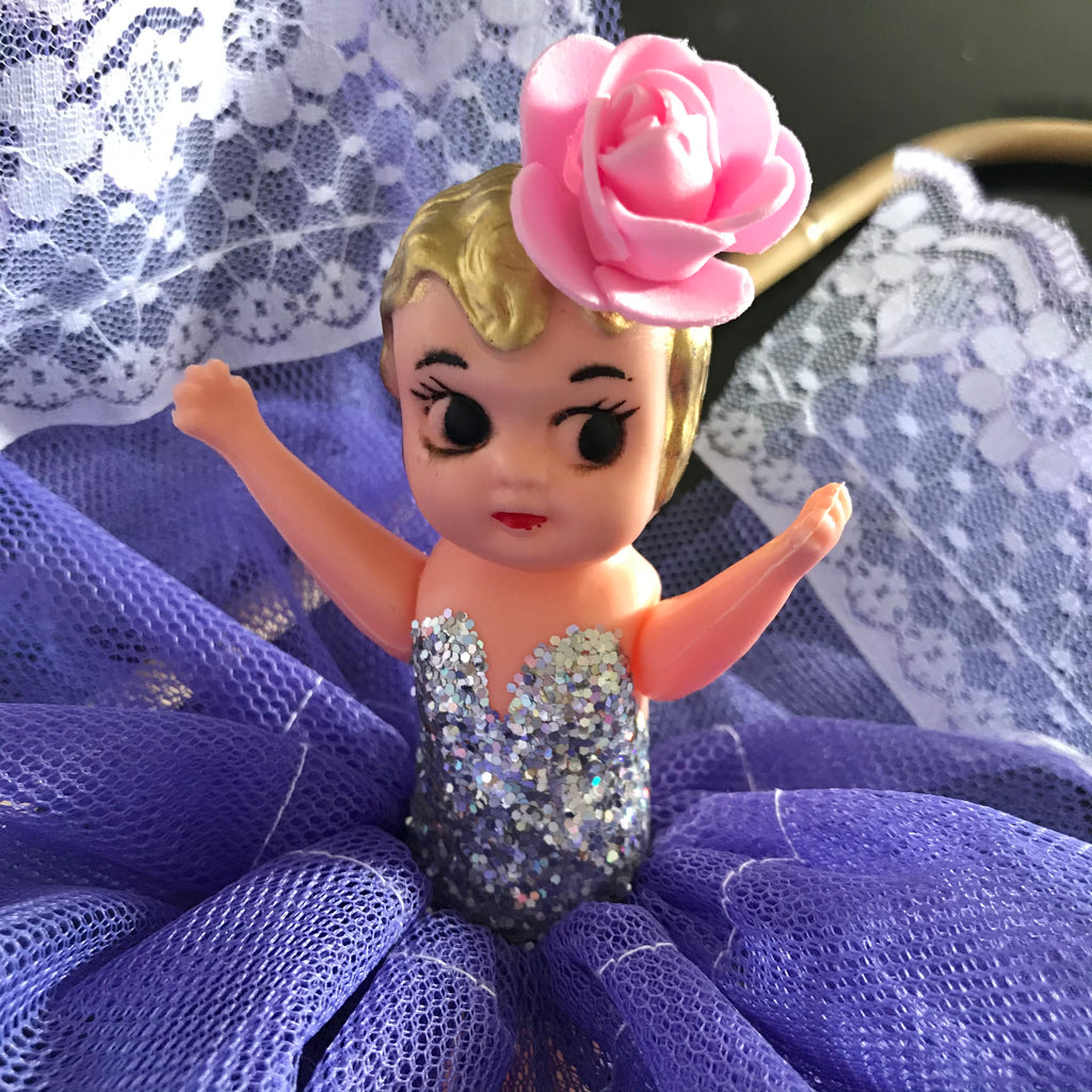 This Original Kewpie Co Kewpie Doll comes with a hand painted glittered bodice and an Original Kewpie Co Kewpie Doll Fancy tulle tutu skirt.